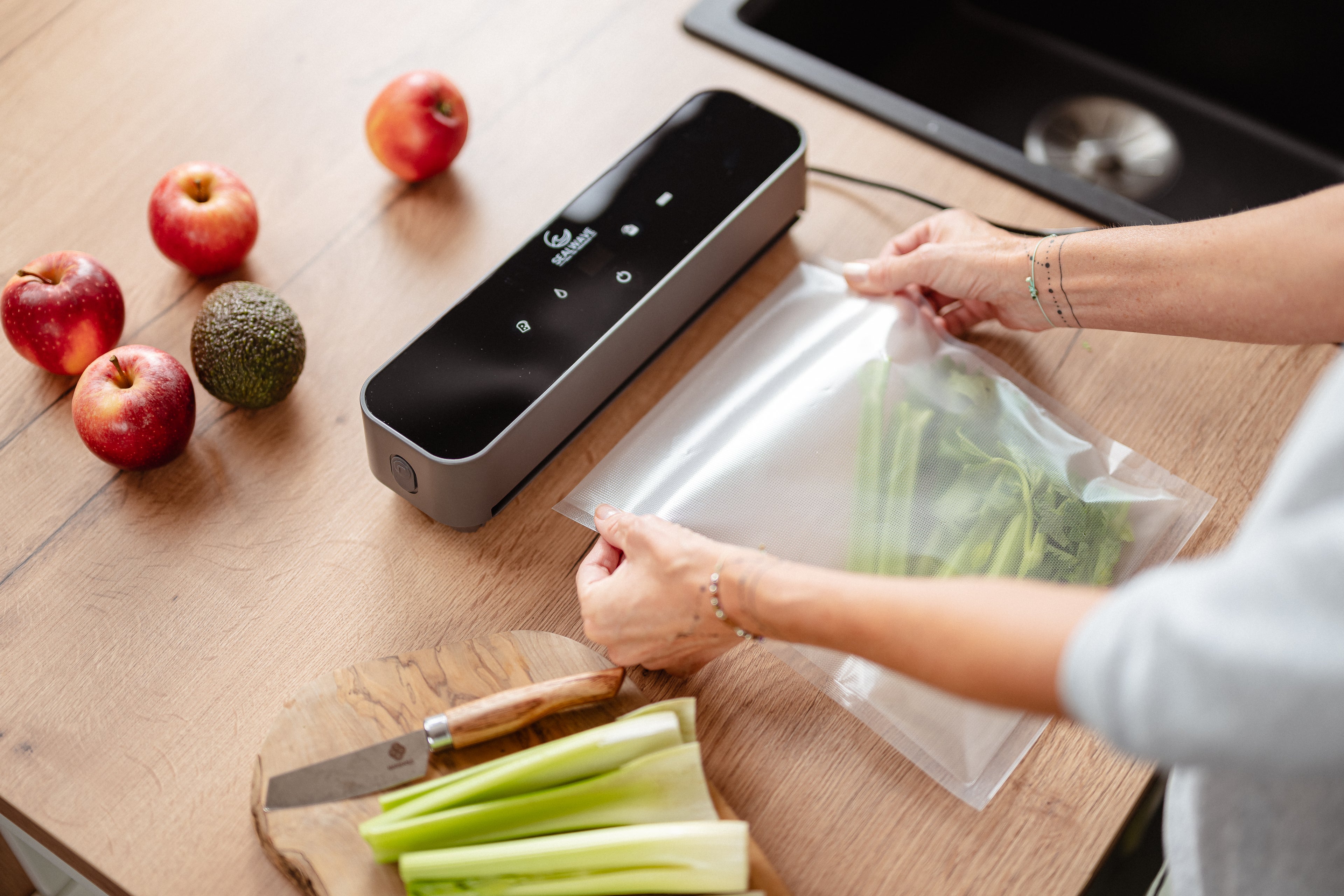 Unsere Kunden genießen dank des Sealwave Vakuumiergeräts länger frische Lebensmittel und werfen weniger weg. Gleichzeitig sparen sie Zeit und Geld, da Einkäufe seltener nötig sind, und die Vorbereitung von Mahlzeiten wird deutlich einfacher und stressfreier.